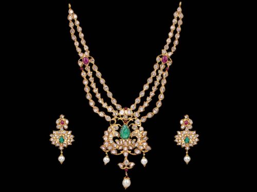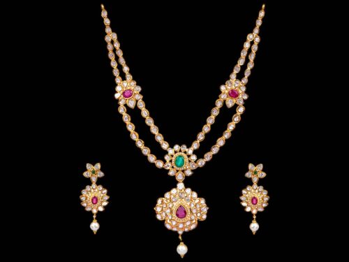 Totaram & Sons brings you Polki sets enriched with Polki diamonds in designs of gold Polki necklace sets and diamond Polki necklace sets.
