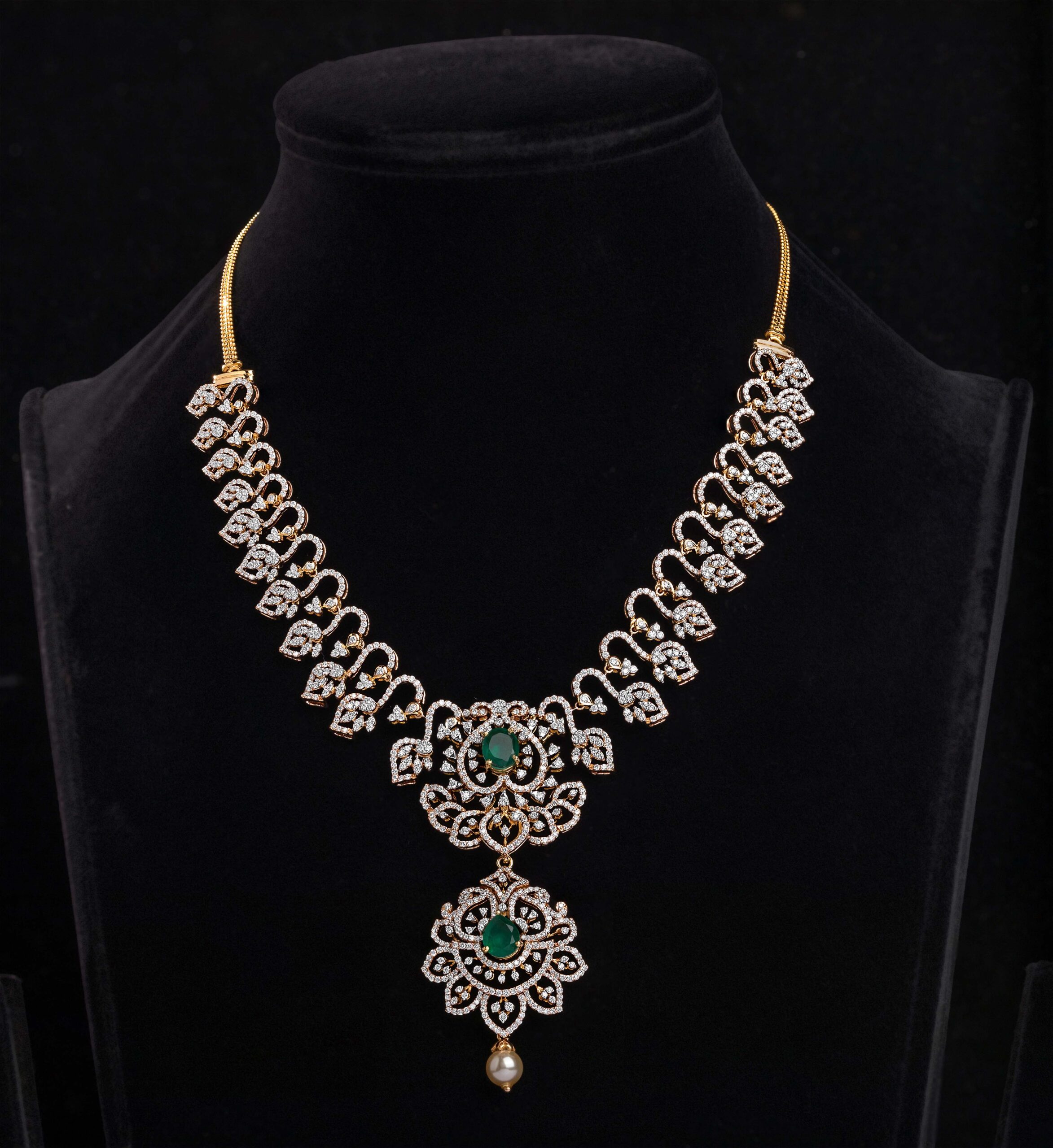 Gold Weight: 42.290Gms Diamonds: 5.30Cts Ruby & Emerald Glass Filled: 5.22Cts Pearls: 3.97Cts