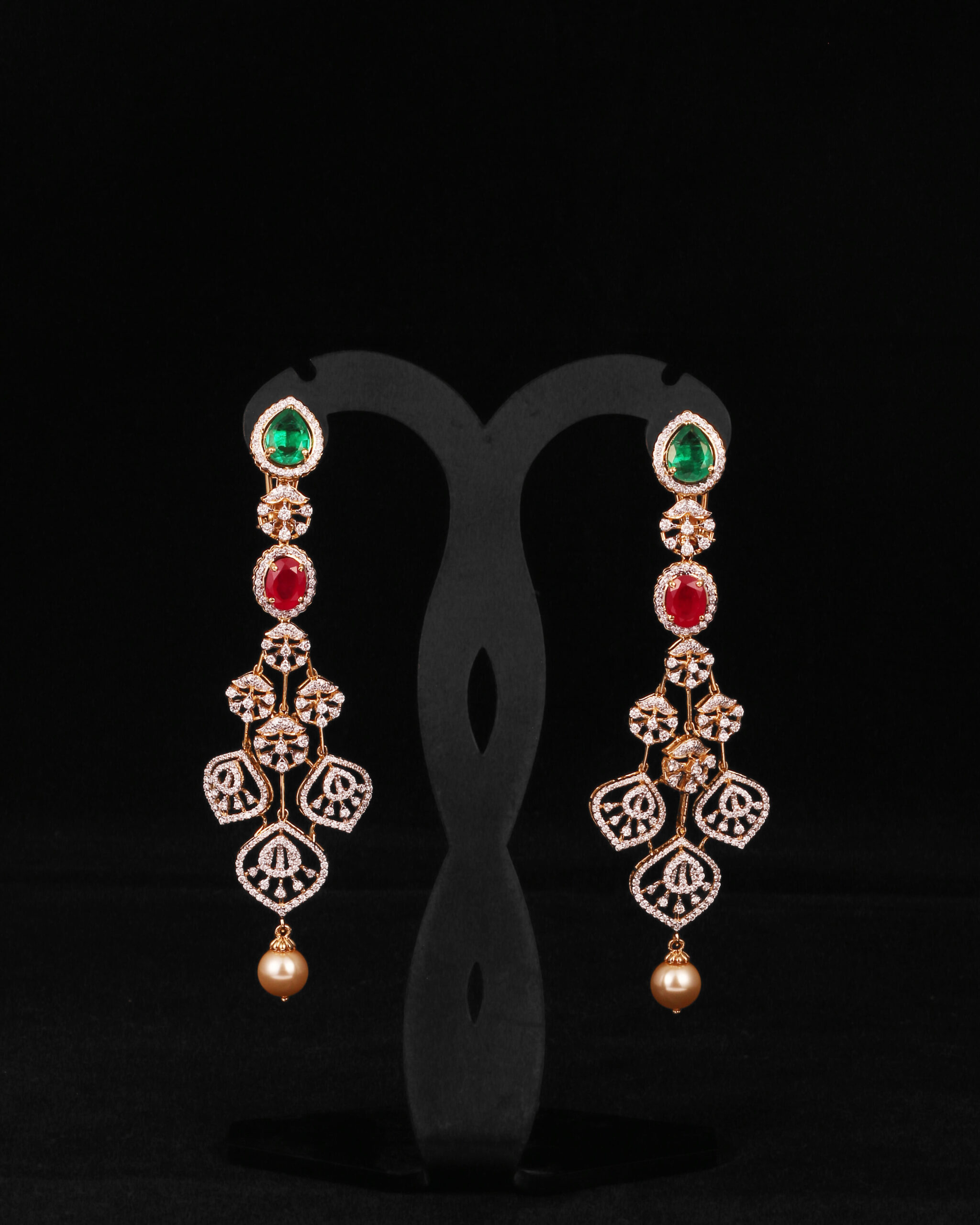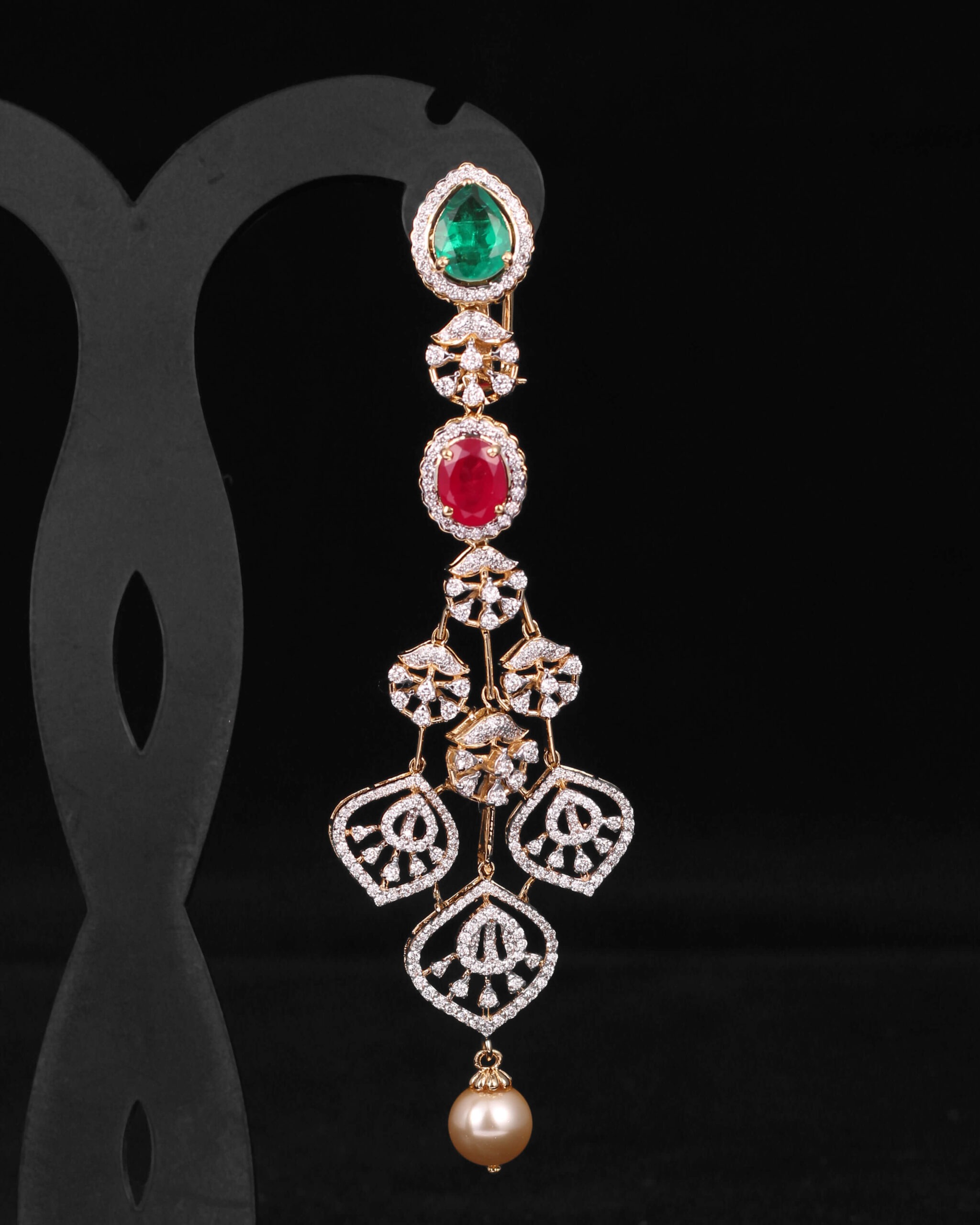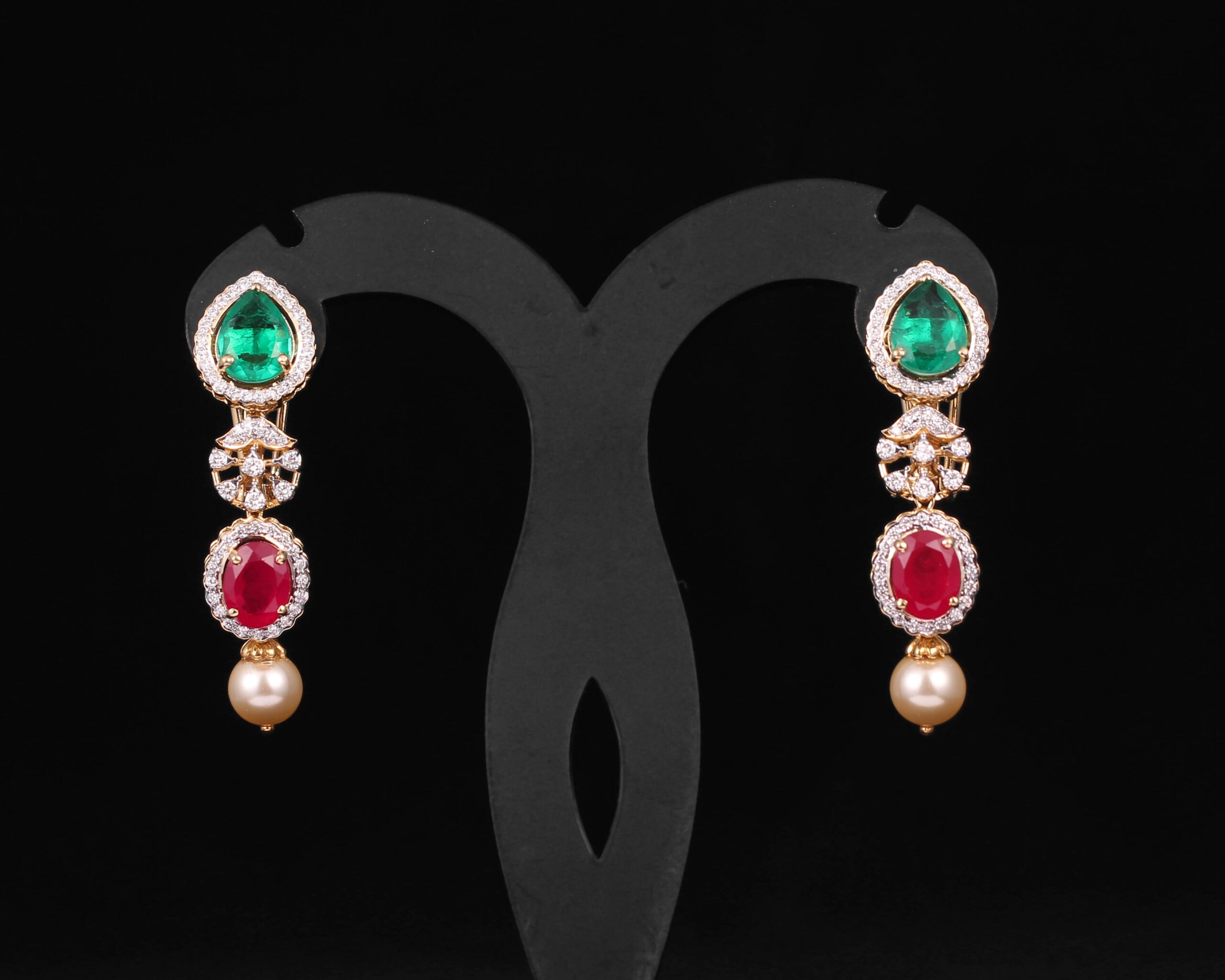 Gold Weight: 32.590Gms Diamonds: 3.35Cts Ruby & Emerald Glass Filled: 6.89Cts Pearls: 12.19Cts