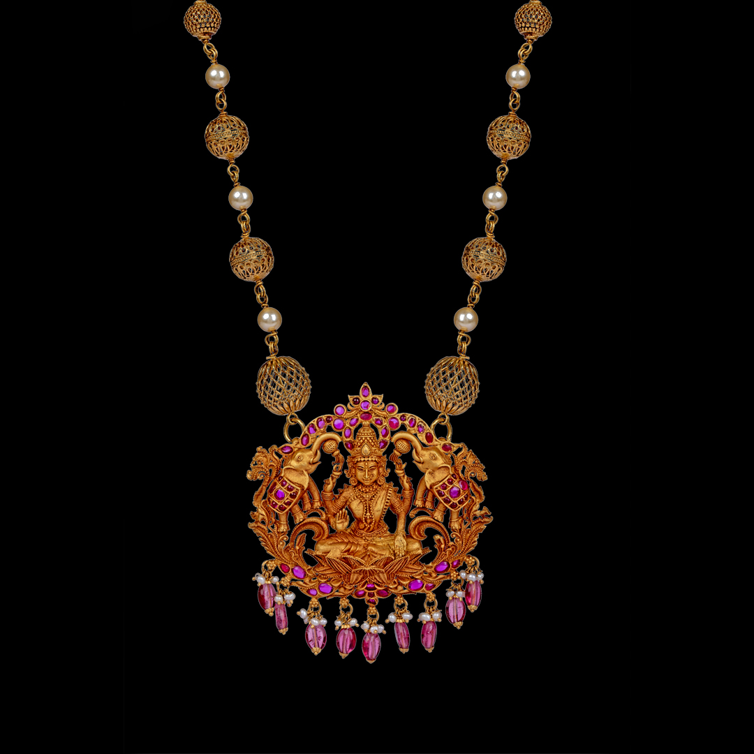 Gold Weight: 31.575Gms Ruby Glass Filled beads: 12.80Cts