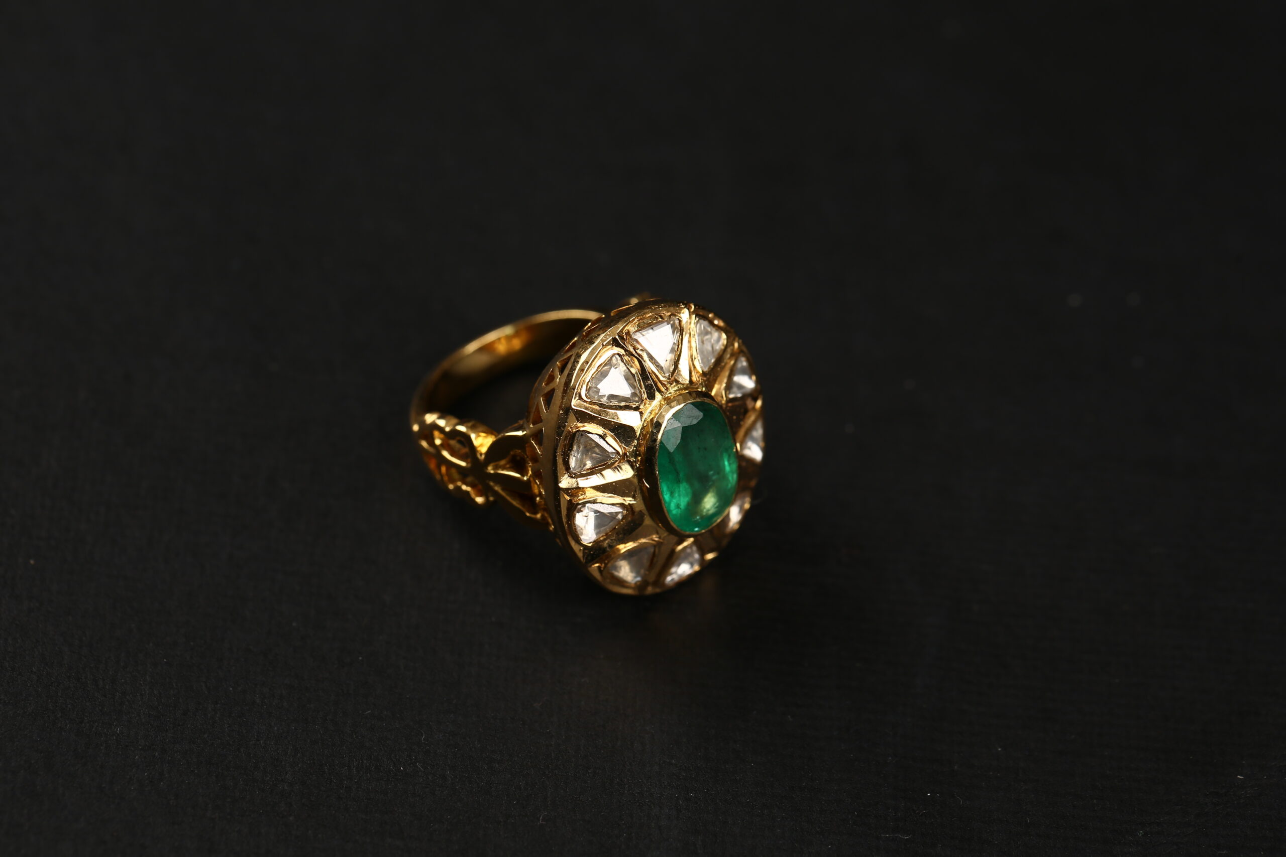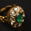 Emerald polki ring with uncut diamonds make this ring a beautiful jewellery to wear. Precious uncut diamonds are used while making this polki ring.