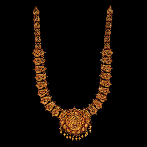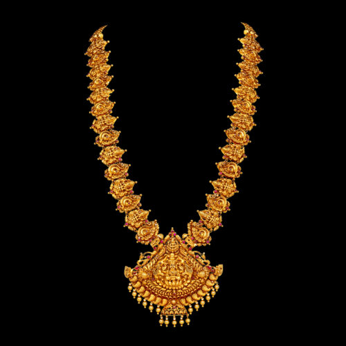 Traditional jewellery for silk saree is like a puzzle matched and made in heaven. Temple jewellery is the perfect jewellery for a silk saree. Silk sarees are the most elegant clothing apparel for festivals and traditional occasions in South India. The authentic design of cultural artistry signifies mythological tales and mystical characters embedded in the form of jewellery.