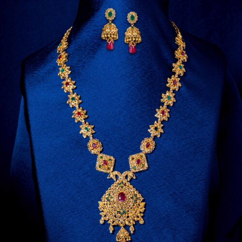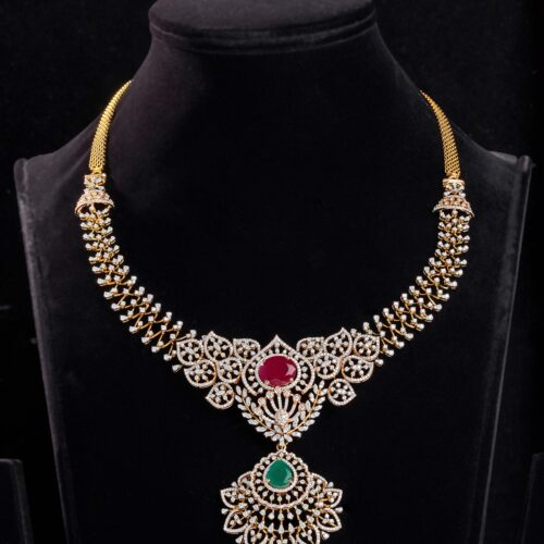 Gemstone jewellery design includes all sapphires, emeralds, rubies and diamonds perfectly inculcated into a sophisticated designer look to bring out the best of the evening attires. Sarees like organza and chiffon are perfect to be combined with these gemstone jewellery designs. However, with time diamonds have become a simple silk saree matching jewellery to bring in the contrast and get the ombre momentum of artistic appearance in a gathering.